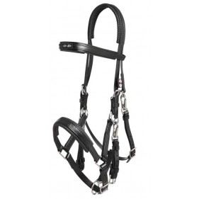 Sangle bavette en cuir avec élastique postérieur plus long afin de faciliter le sanglage.