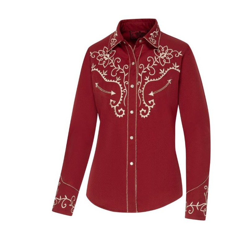 Chemise western pour dame avec de superbes broderies sur la poitrine, le dos, les poignets et le col.