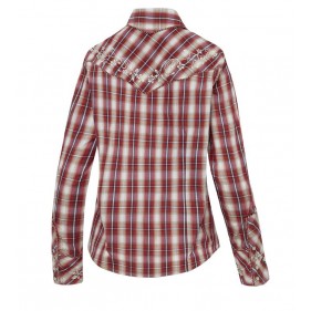 Blouse western pour dame, à carreaux avec broderie sur la poitrine, le dos et les manchettes.