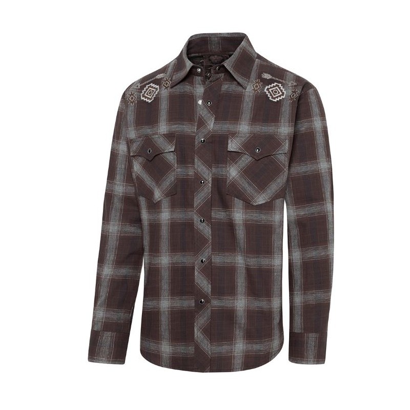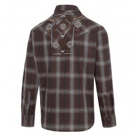 Chemise western pour homme, à carreaux, avec des broderies au look aztèque sur le devant et dans le dos.