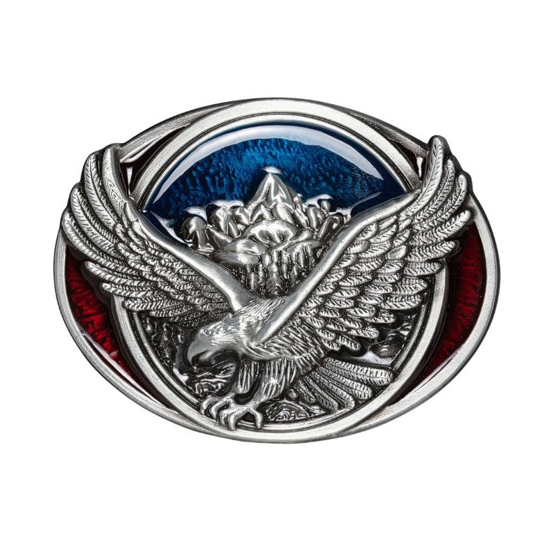 Boucle de ceinture Western avec des effets d'émail et un fond noirci.