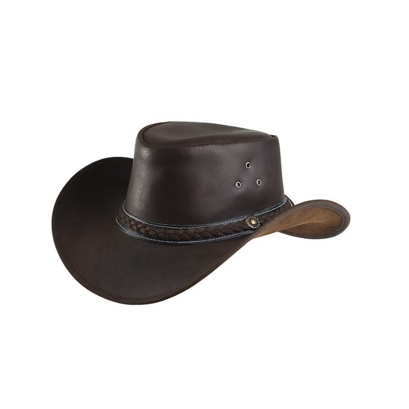 Tour de calotte cerclé d'un sanglon, d'une tresse en croûte de cuir ainsi que d'une marguerite en métal vieilli.