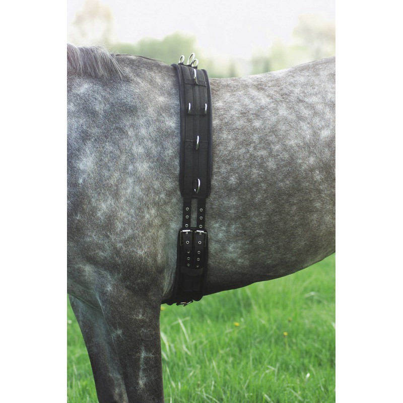 Un surfaix synthétique idéal pour le travail à la longe ou en longues rênes.