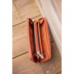 Le portefeuille Vittoria se ferme par un zip ton sur ton et il s'assortir aisément à de nombreux sacs de la gamme maroquinerie Pénélope grâce à son joli cuir noisette.