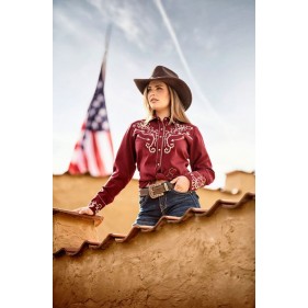 Chemise western pour dame avec de superbes broderies sur la poitrine, le dos, les poignets et le col.